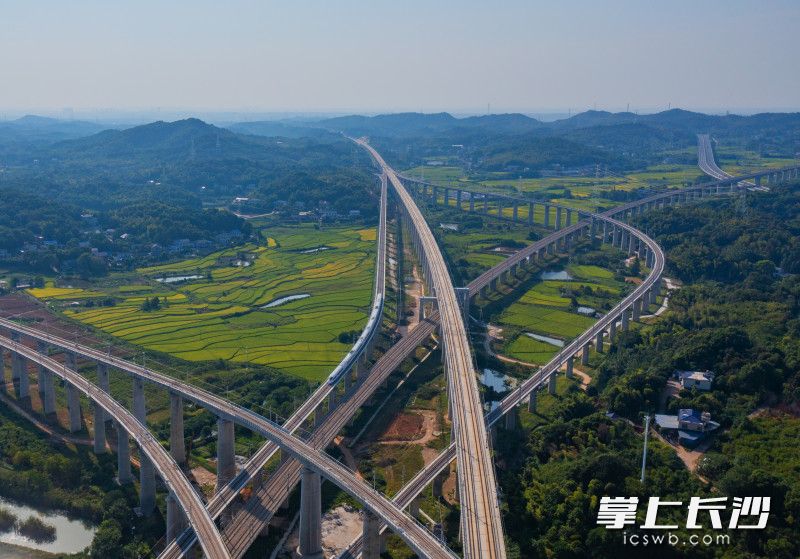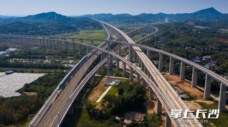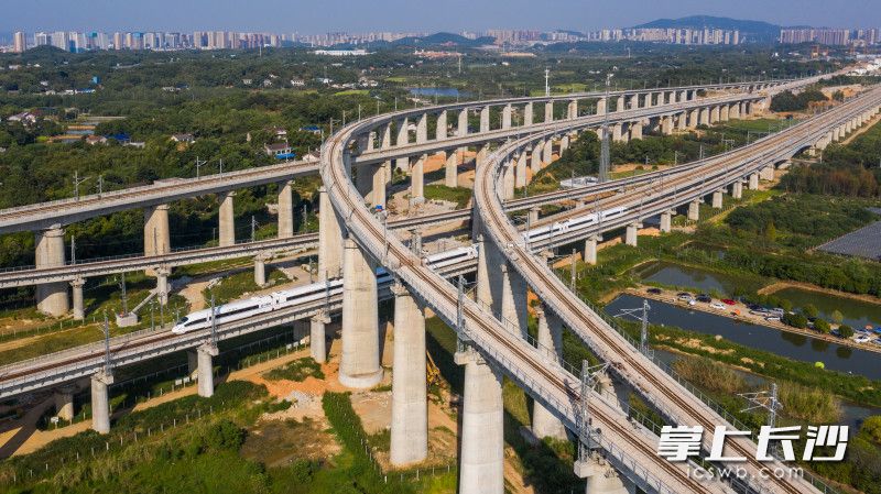 6日下午,记者来到位于渝厦高铁益长段临近长沙高铁西站的路段。这里分布着常益长高铁正线、常益长至长株潭上下行联络线、长沙西动车走行线等,铁路线网纵横交错,在航拍镜头里十分壮观。长沙晚报全媒体记者 黄启晴 邹麟 摄影报道