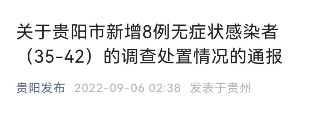 9月6日凌晨,贵阳发布通报,新增8例无症状感染者。