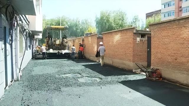 4日,在位于农安县的农行家属楼老旧小区改造施工现场施工人员正忙着量尺、放线、铺压沥青,铺设机和压路机将原来的坑洼路面铺设完整。