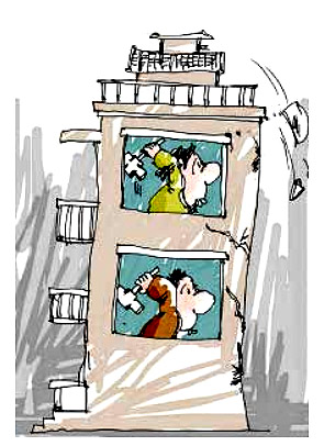 高空坠物杀伤力很强,地震时高空坠物更容易发生,需要引起我们的高度警惕。楼房阳台上放置的花盆、安装得不牢固的空调外机、早已摇摇欲坠的金属晾衣架、年久失修的防盗窗,甚至风化松动的外墙瓷砖等等,在地震时都有可能成为从天而降的“炸弹”,必须在平时就注意检查,采取切实的措施消除隐患。