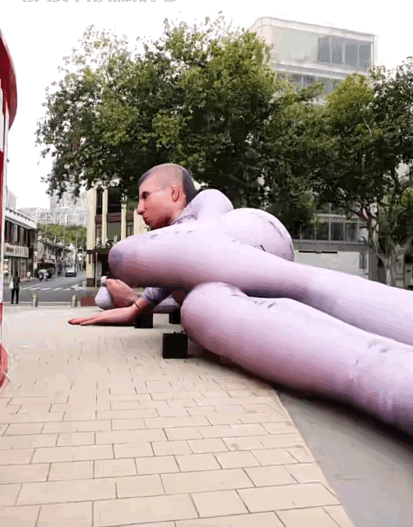支起了一个巨型充气人偶装置