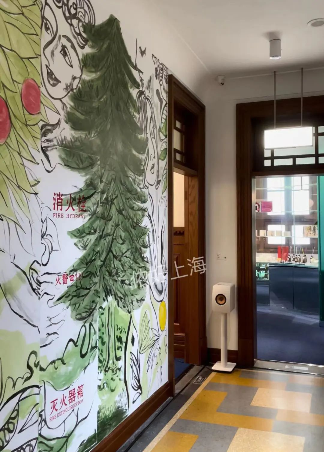 宽阔的大厅,复古的拼花地砖