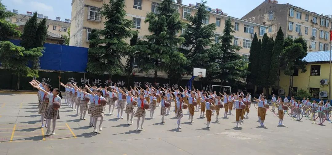 学校结合办学理念,落实“双减”政策,开发了素养课程“悦动幸福”韵律操、“舞动绿茵”篮球操、“灵动启智”游戏课、“艺动指尖”手工课、“乐动编程”编程五类校本课程,全员参与幸福读写及趣味数学社团;改进大课间模式,大课间在花样跑操中融入了手语舞《中华孝道》、幸福活力操、素质操及班本活动,低段的过山洞、吹泡泡、穿树林等,中段的哗啦圈、花样皮筋和跳绳、障碍物跳等,高段的踢毽子、踢沙包,花样篮球和乒乓球等,各类活动的开展让学生在独具特色的活动中实现多元发展,把延时服务与教育教学融为一体,真正实现了为学生的幸福奠基。