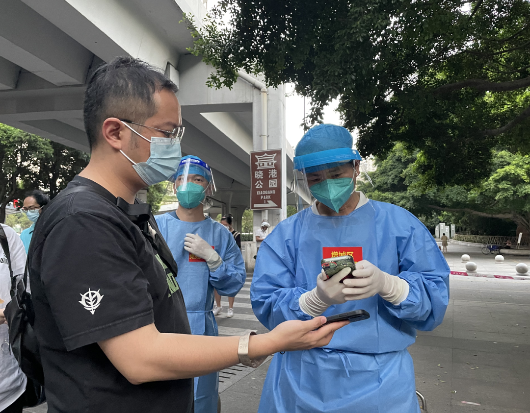 “我们上午、下午和晚上都有不同的工作。上午主要负责支援核酸检测工作,下午做电话流调员,晚上我们在海珠公园设置便民服务点,为居民提供核酸检测服务。疫情就是命令,防控就是责任。深扎抗疫前线、到群众最需要的地方,不求回报,尽心尽力,我想这也应该是全体党员应该具备的觉悟。”增城区党员突击队志愿者王文斌说道。
