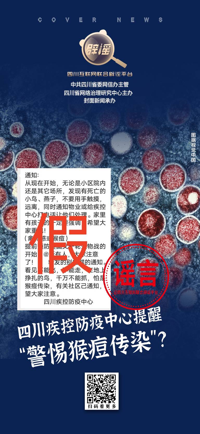 辟谣海报|四川疾控防疫中心提醒“警惕猴痘传染”是假的!
