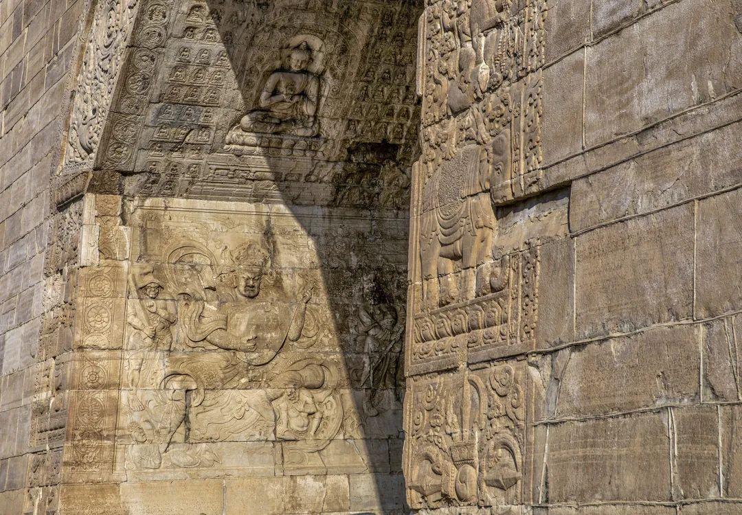 法海寺门特点却并不在上述诸点,石造及其年代等等,主要的却是它的式样与原先的居庸关相类似。从前居庸关上本有一座塔的,但因倾颓已久,无从考其形状。不想在平郊竟有这样一个发现。虽然在《日下旧闻考》里法海寺只占了两行不重要的位置;一句轻淡的“门上有小塔”,在研究居庸关原状的立脚点看来,却要算个重要的材料了。