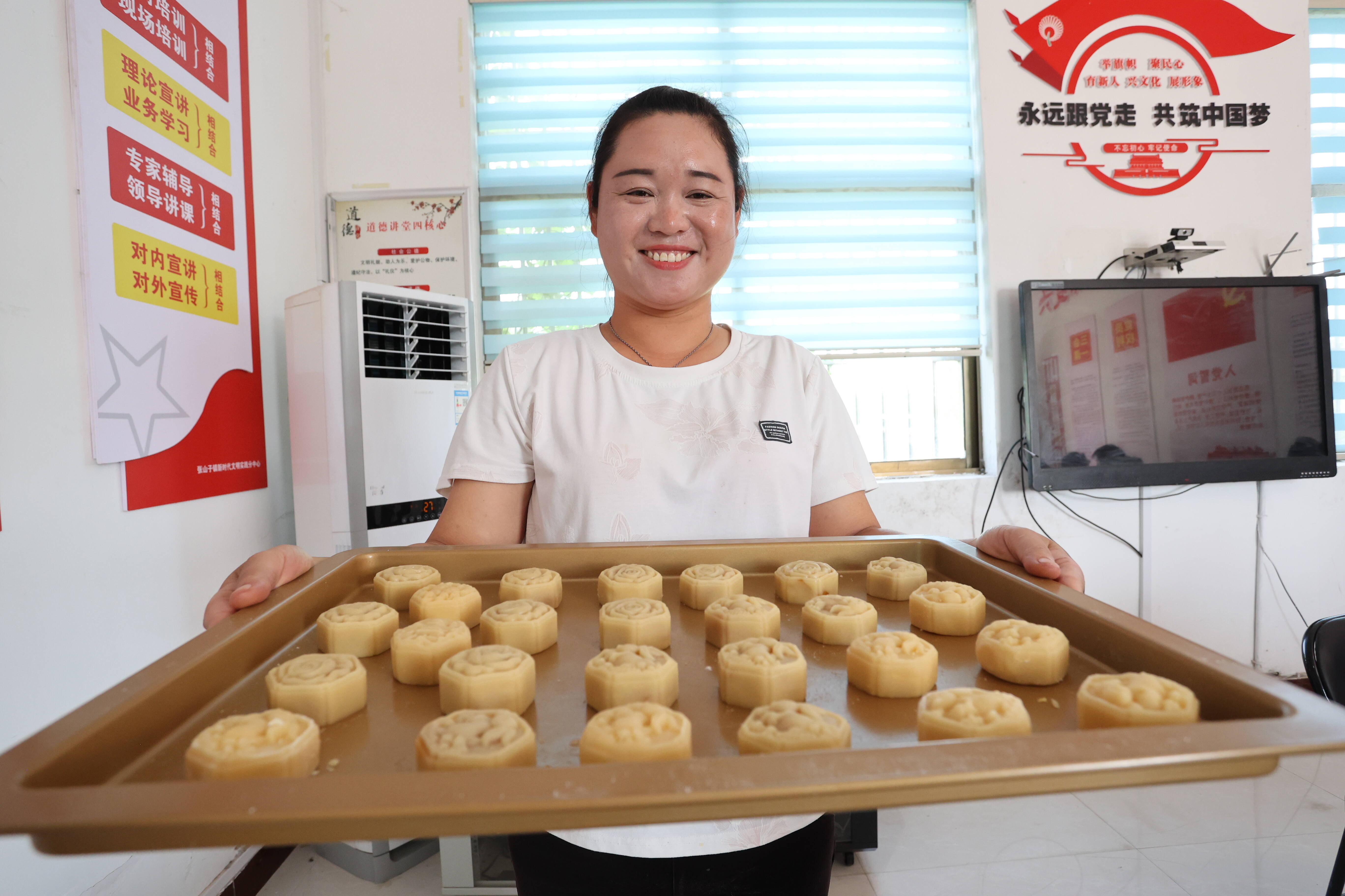 随后,活动现场发放了《“树良好家风 建廉洁家庭”倡议书》,志愿者们结合警示教育案例,引导广大群众自觉做到以廉养家,传承文明好家风坚决筑牢家庭廉洁防线,让家庭成为远离腐败的纯洁阵地、温馨港湾。宣讲后,为了让群众深切体会中秋节日的热闹氛围,真正体会自制月饼的乐趣,邀请区面点师为群众讲解制作月饼的技巧、示范月饼的制作过程,大家边听边看边学边讨论,和面、包馅、压模,道道工序有条不紊地进行着,不一会儿,一个个漂亮精致的月饼从自己手中诞生,整个现场热闹非凡,充满欢声笑语。