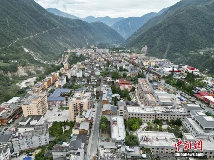9月6日,航拍四川甘孜州泸定县磨西镇。9月5日12时52分,四川甘孜州泸定县发生6.8级地震,震源深度16千米。(无人机照片) 中新社记者 张浪 摄