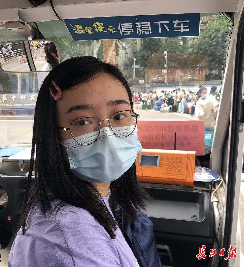 杨雨盟在华中师范大学乘坐校内巴士。记者胡义华 摄