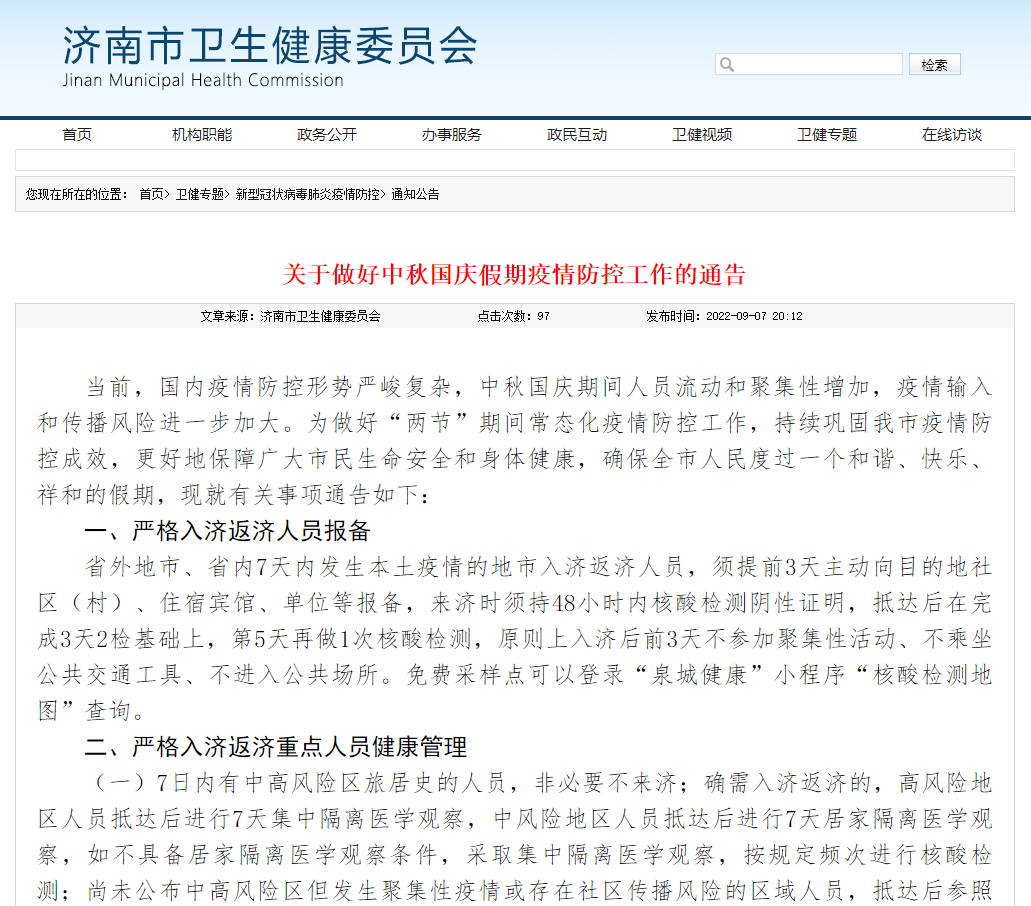 当前,国内疫情防控形势严峻复杂,中秋国庆期间人员流动和聚集性增加,疫情输入和传播风险进一步加大。为做好“两节”期间常态化疫情防控工作,持续巩固我市疫情防控成效,更好地保障广大市民生命安全和身体健康,确保全市人民度过一个和谐、快乐、祥和的假期,现就有关事项通告如下: