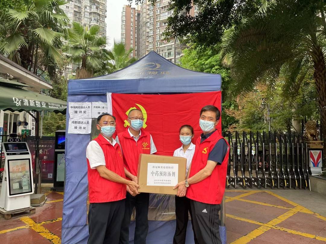 9月7日,达州市中医药管理局党组书记黄中平,达州市中西医结合医院党委副书记、院长胡小琦一行前往通川区马房坝社区各小区,将一袋袋熬制好的防疫中药送到志愿者、工作人员等抗疫一线人员手中,在疫情防控的特殊时期,为抗疫一线人员送上了中医人的温暖问候。
