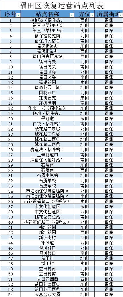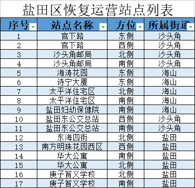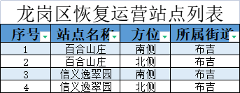 根据福田、罗湖、盐田、南山、龙岗、龙华等区疫情防控指挥部相关通告要求,自9月8日0时起,部分公交站点恢复运营,途经公交线路恢复停靠,还有部分公交站点暂停运营,途经公交线路跳站通过。