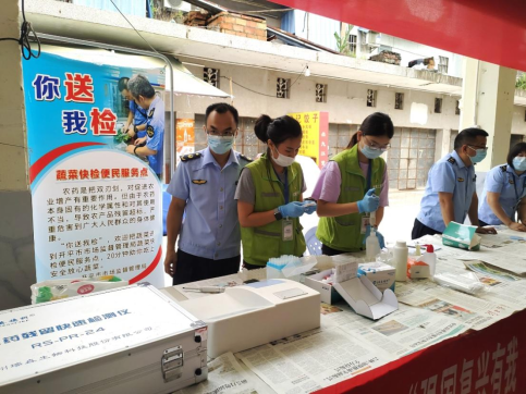 为加强开平市食用农产品安全监管工作,进一步提高基层群众对食用农产品快检工作的知晓率与参与度,近日,广东省开平市市场监管局在百合市场组织开展了开平市今年第八期“你送我检”食用农产品快检宣传活动。