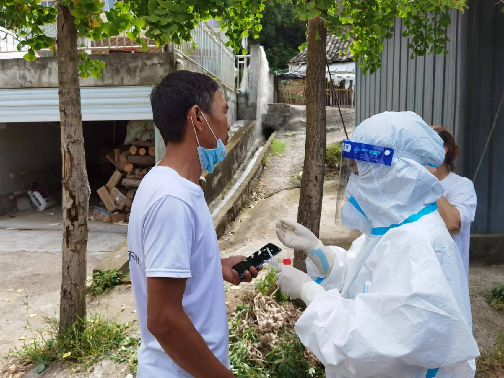 “消毒、采样、再消毒、再采样,防护服笨重憋闷,口罩被汗水泡透,手背皮肤也起了褶皱……”这1300余名“白衣卫士”,在社区、乡镇干部的带领下,头顶灼灼烈日,身裹密不透风的防护服,徒步穿梭在这2235平方公里的狭窄巷道和崎岖乡路上,进村入户,按照名单逐一采集核酸样本,确保“应检尽检、不漏一户、不落一人”。