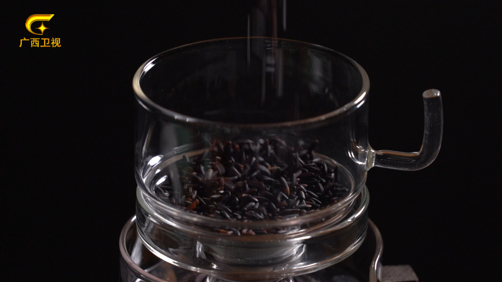 黑米经热水一冲,米粒表层中的原花青素,就融入到了水里面,一杯米香浓郁的黑米茶,瞬间成型。