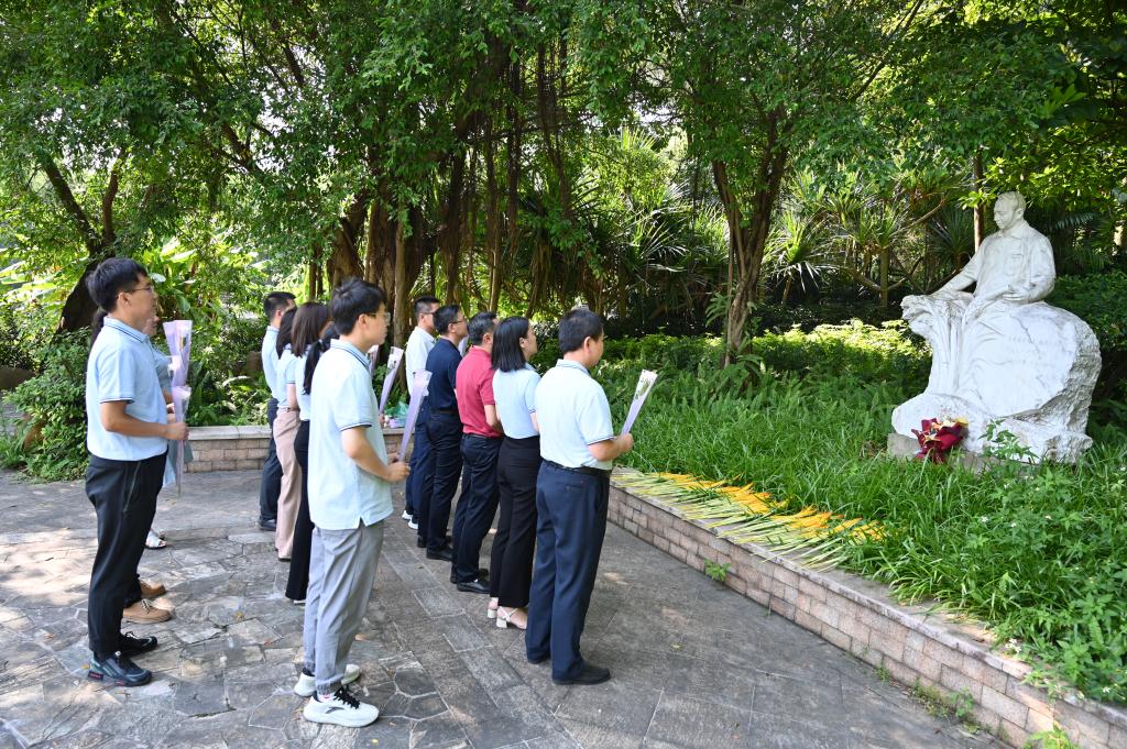 教师节前夕,华南农业大学师生自发来到丁颖、卢永根院士雕像前敬献鲜花。(华南农业大学供图)