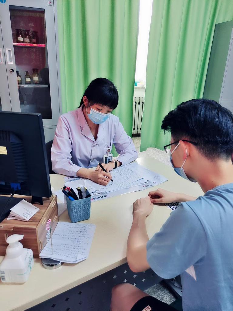 图为中国人民解放军北部战区总医院过敏反应科主任柴若楠正在为患者诊断。(受访者供图)