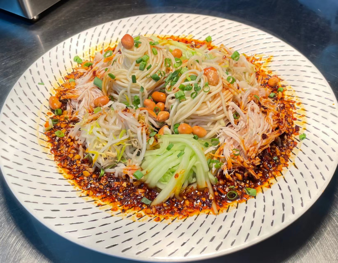 米兰西典则以一盘家常味的凉拌小面,赢得了评委的青睐。这道小吃清爽不油腻,酸辣开胃,正是夏秋之季的不二选择。
