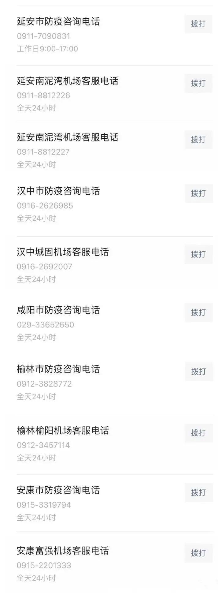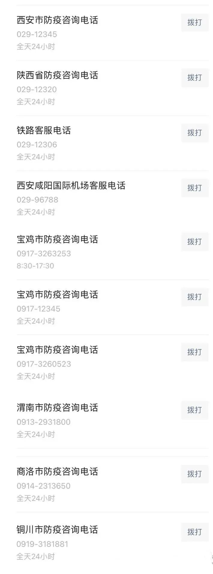陕西省各地防疫咨询电话