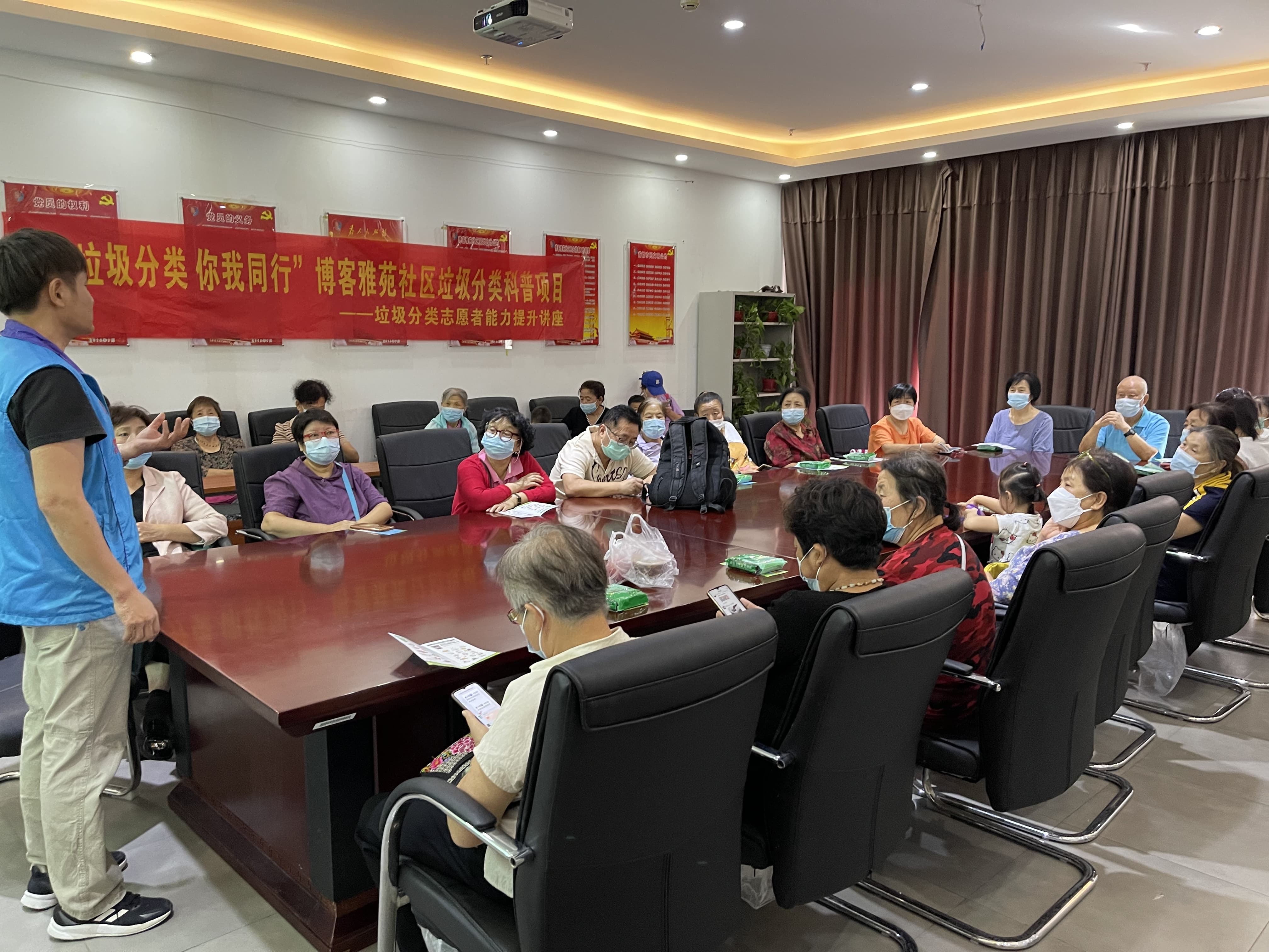 9月5日上午,博客雅苑社区开展了“垃圾分类志愿者能力提升讲座”,共有30名居民志愿者参与。