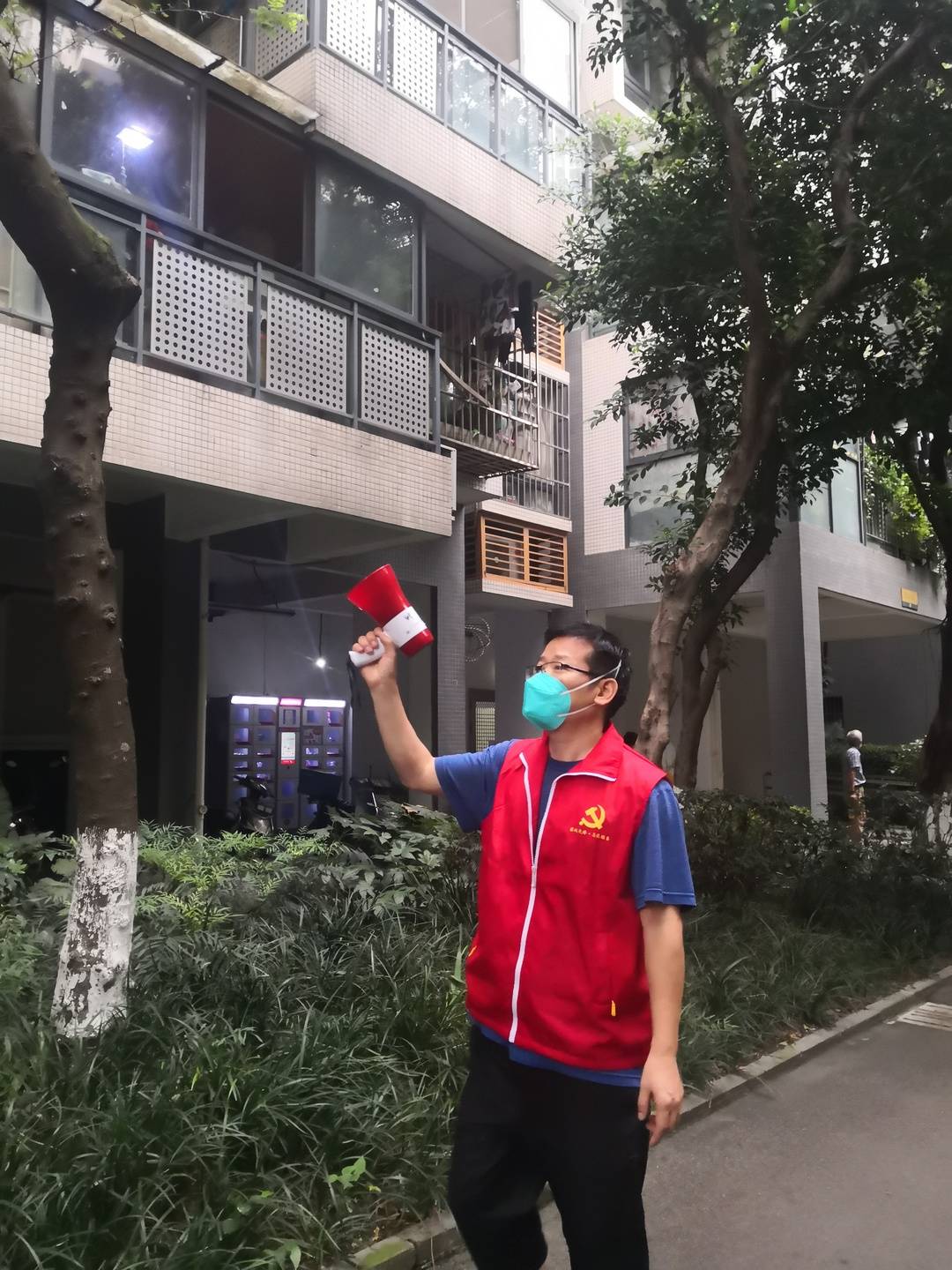 我叫彭家河,是四川省作协的一名党员。每天在小区向大家宣传防疫新规定时,我都会高高举起手中的红色小喇叭,用邻居们乐于接受的方式提醒他们。
