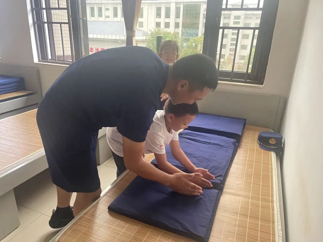 在引导员的带领下,小朋友和家长来到生活区域进行参观,了解森林消防员的日常生活。一尘不染的宿舍、整齐划一的衣物柜、方方正正的“豆腐块”,让家长和孩子们都不由得发出惊叹。看着小朋友跃跃欲试的目光,森林消防员拆开被子教大家叠置方法,并组织每名小朋友现场进行叠被子体验。同时,该驻防队伍精心安排了业务知识精通的骨干为师生全程讲解,随机穿插讲解森林草原防火常识和日常生活中的消防安全知识。