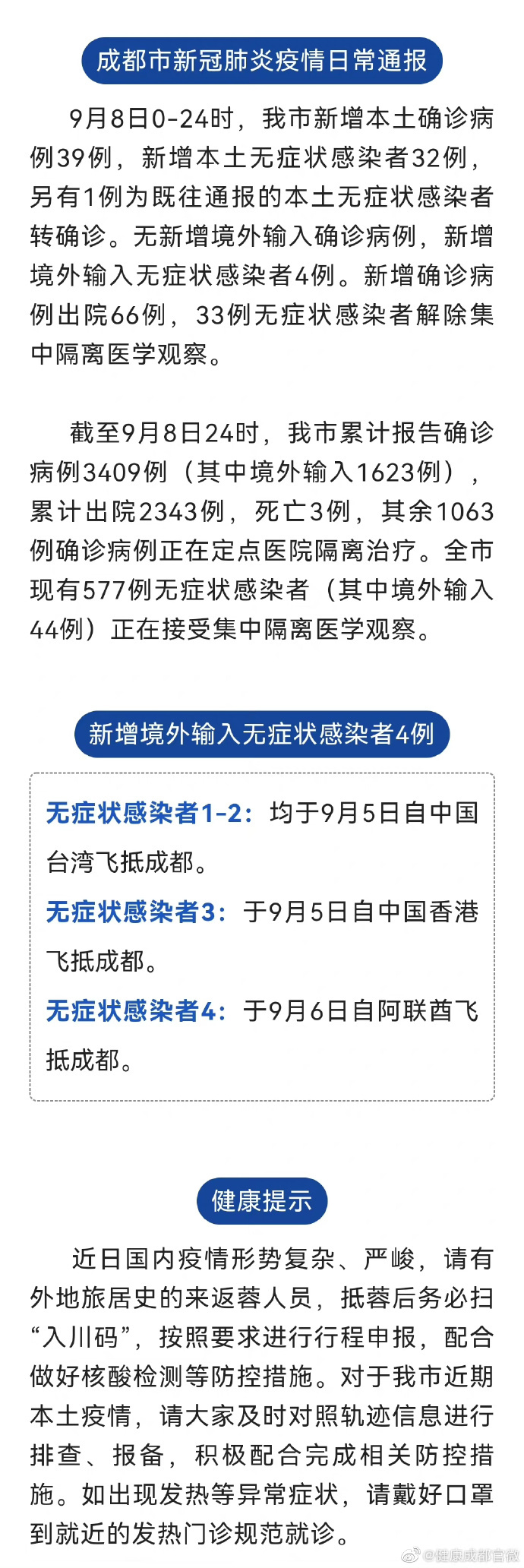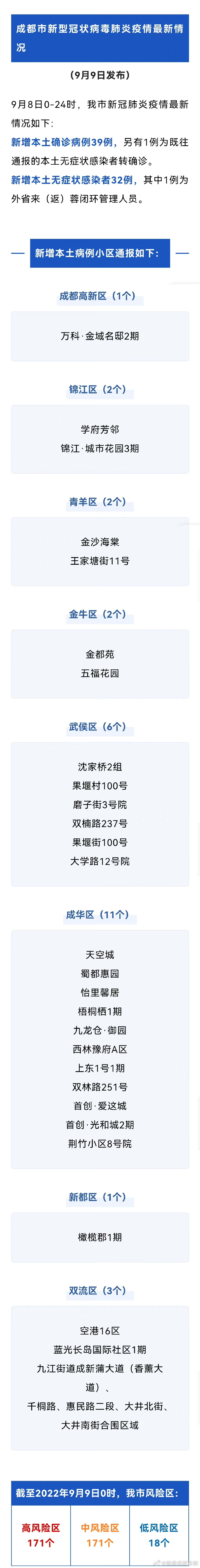 9月8日0-24时,我市新增本土确诊病例39例,新增本土无症状感染者32例