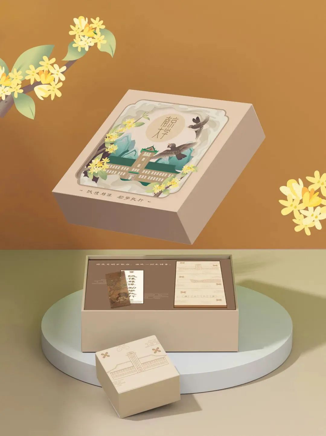 月饼的礼盒包装灵感来源于南京大学明代藏品《桂花双雀图》南大校园里的标志性建筑——北大楼赫然耸立在口味上联名冠生园定制了莲蓉蛋黄、奶黄流心、抹茶流心莲蓉蛋黄细腻油润奶黄流心咸甜鲜香抹茶流心清爽怡人除此之外礼盒中还搭配了一块纪念水晶摆件精雕了校徽、校训与北大楼摆件亦可作为镇尺使用是对百廿南大的诚挚献礼「东南大学」温柔与诗意今年中秋推出的SEU定制款月饼图案有南大门和校徽两款在外包装上共设计了三款款款透露着温柔与诗意东南赏月「明月夜中静相思六朝松下听箫韶」“东南赏月”主题设计将中秋赏月活动和六朝松进行了结合。以月亮、玉兔、白云作为中秋传统元素,以松叶、六朝松作为东大元素,进行抽象及融合而成。东南品桂「桂花酿中品相思东南檐下温旧岁」“东南品桂”主题设计将饮桂花酒和东大建筑进行了结合。将大礼堂顶和涌泉池抽象为器皿,与中秋饮桂花酒这一习俗融合而成。东南游灯「千门灯火夜似昼万叶梧桐静迎秋」“东南赏月”主题设计将中秋赏灯活动和梧桐进行了结合。秋季是东大梧桐最绚烂的时节,也是无数东大人挥之不去的记忆,此主题以梧桐为主元素,同时融入了校训、120周年校庆等。口味上更是多样广式豆沙、广式蛋黄椰蓉、广式火腿广式椒盐五仁、广式肉松、广式牛肉总有一款是你最爱「南京航空航天大学」校庆限定古有嫦娥奔月的传说 现有南航悉心培养“奔月的人”先来看外盒设计标志性建筑在包装袋上集结一盒在手,南航我有!△包装盒做镂空设计,南航的建筑跃然盒上。一栋栋建筑穿梭在云层之中,云河为纽带,把三校区情谊紧紧串联在一起。透过镂空部分,可欣赏到内部皮影戏样式的立体图景。前景为宇航员与月桂树下的嫦娥遥相对望。远景为将军路校区砚湖边,长征五号运载火箭与砚湖石和湖畔的植物,在一轮圆月的映衬下熠熠生辉。两幅精致插片可以独立拿出,用作书签。包装盒背面为简约式设计,展示中秋夜晚的校园剪影,侧面为南航建校70周年logo和中秋祝福。内盒设计六架停落于三校区内的飞机映入眼帘每一小盒一架飞机每一小盒一种花色每一小盒一种口味月饼口味每一款口味都是人气爆棚每一款图案都是校园标志建筑每一款颜色都是缤纷双拼奶黄流心奶黄流心月饼,黄白渐变,明故宫校区主楼前的日晷跃然饼中。西湖龙井西湖龙井月饼,绿意茶香湖水绵绵,中间印有“美味南航”的字样。猫山王榴莲猫山王榴莲月饼,橙白相间,一口咬下,榴莲浓郁香满口。 芝士豆乳芝士豆乳月饼,浓郁的芝士热烈拥抱着香甜的豆乳。巧克力流心巧克力流心月饼,细绵柔软,香浓诱人,一口纵享丝滑。芋泥波波芋泥波波月饼,清香可口,沙沙糯糯。「南京理工大学」理工也有浪漫八款标志景物八种专属味道(二道门)金沙奶黄一口爆浆的蛋黄流心加上外层酥软的黄金桃山皮含在口中,化进心田(校徽)五谷杂粮经典口味是味蕾中的一抹记忆减糖新配方,低脂更营养(校风碑)蜜桃青茶粉嫩的外皮深藏不露青茶的清新与桃桃的清甜一切都是如此的恰到好处(兵器博物馆)法式乳酪浓郁的乳酪如云朵一般,内里绵软一场感性浪漫的邂逅(和平园)茶渍青梅一抹淡绿小清新清香的青梅馅配上青苹果桃山皮酸甜可口,味道独特(止戈园)桂花酒酿既有桂花的清香又含酒酿的醇厚完美搭配(时间广场)厚椰拿铁椰子碰上咖啡颠覆传统炫一口不被定义的月饼(三迎桥)抹茶红豆甜口的月饼再来一杯香气馥郁的铁观音齿颊留香,心旷神怡「南京工业大学」教师节版月饼南工大今年的月饼从内到外全面升级口感与颜值都得到了很大的提升其中更是推出【教师节】版独家私人定制的小盒装「南京邮电大学」“邮”你月更圆月饼分别印刻80周年校庆标识三好亭、安恒青春剧场三维通信战邮广场图样包装主色调为石青温婉柔和,清丽典雅紫薯、青柠芝士流心提拉米苏、酒酿桂花四种不同口味香甜醇厚,酥绵爽口高颜值的办学80周年纪念月饼让柚子们佳节同庆“邮”你月更圆上下滑动查看桃山酒酿桂花月饼80周年专属LOGO。入口是恰到好处、醇厚绵甜的酒香,细细回味,馥郁而悠远的桂花香在舌尖散开,将柚子们青春里懵懂而朝气的回忆酿成秋日里独特而复杂的美妙滋味。桃山提拉米苏月饼三好亭,三牌楼校区,承载着太多新老校友的记忆。浓郁的奶香带着咖啡香气与细绵微苦的可可,在口腔里温柔地弥漫开来,多重层次与滋味在此交织融合。桃山青柠芝士流心月饼八十载乘风破浪,青春剧场换新颜。安恒青春剧场已于今年6月正式启用。青柠恋上芝士,绵润清新的爱意沉浸在芝士的馥郁丝滑里,少了些许甜腻,多了一丝淡雅。齿颊留香,满口生津。桃山紫薯月饼时值办学80周年,三维通信战邮广场应时而生。粉紫色细腻的外表自带绵绵软软的属性,这款香浓丝滑的桃山紫薯月饼作为色彩营养学的高分战士,让你第一口就被疯狂圈粉!「南京林业大学」养生和创新今年中秋南林食堂为大家带来了全新口味的中秋月饼月饼采用低糖配方还有更多养生和创新口味等着大家发现精装六枚礼盒五谷杂粮(低糖)茶渍青梅(低糖)番茄牛肉、低糖黑芝麻低糖红豆沙、低糖白莲蓉平装六枚礼盒抹茶红豆、流沙奶黄厚椰拿铁、金牌莲蓉红酒蔓越莓、辣子鸡「南京医科大学」月满南医满月之下天元湖面碧波粼粼如明镜学海、德馨倒