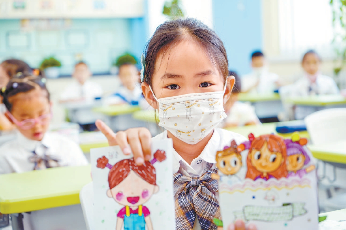 今天上午,黄城根小学分校的孩子们用图画画出美好的愿望,送给老师。武亦彬 摄