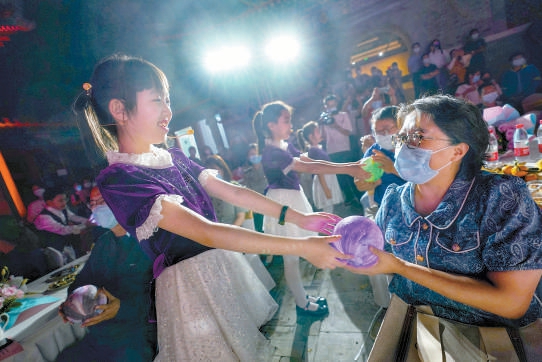 “盈月揽芳华,桃李谢师恩”2022年中秋教师节活动在什刹海文化展示中心举行。学生们向教师代表表达了感激之情。方非 摄