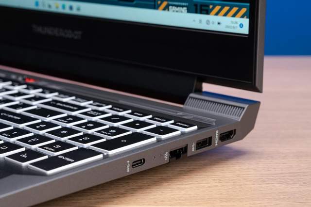▲机身右侧接口,一个USB大口,一个Type-C口,一个HMDI2.1口,一个RJ45有线网口。C口不是雷电4规格稍有遗憾。
