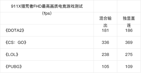 上面说到,911X猎荒者搭载的RTX 3050Ti主要定位是电竞游戏,因此在游戏实测中,我们先考查该机的电竞游戏表现,分为混合输出和独显直连两项测试。