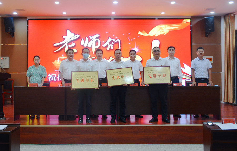 金秋送爽,丹桂飘香。9月9日,湖北丹江口市习家店镇在中学阶梯教室召开第38个教师节表彰大会,丹江口市政协副主席陈少斌、丹江口市教育局局长孔繁盛、习家店镇党委书记詹峰、镇党委副书记、镇长李新胜出席大会,对3个教育先进单位及10名优秀教师进行表彰, 进一步激励广大教师和教育工作者以更大激情干事创业,进一步营造尊师重教、育人为本的良好氛围。