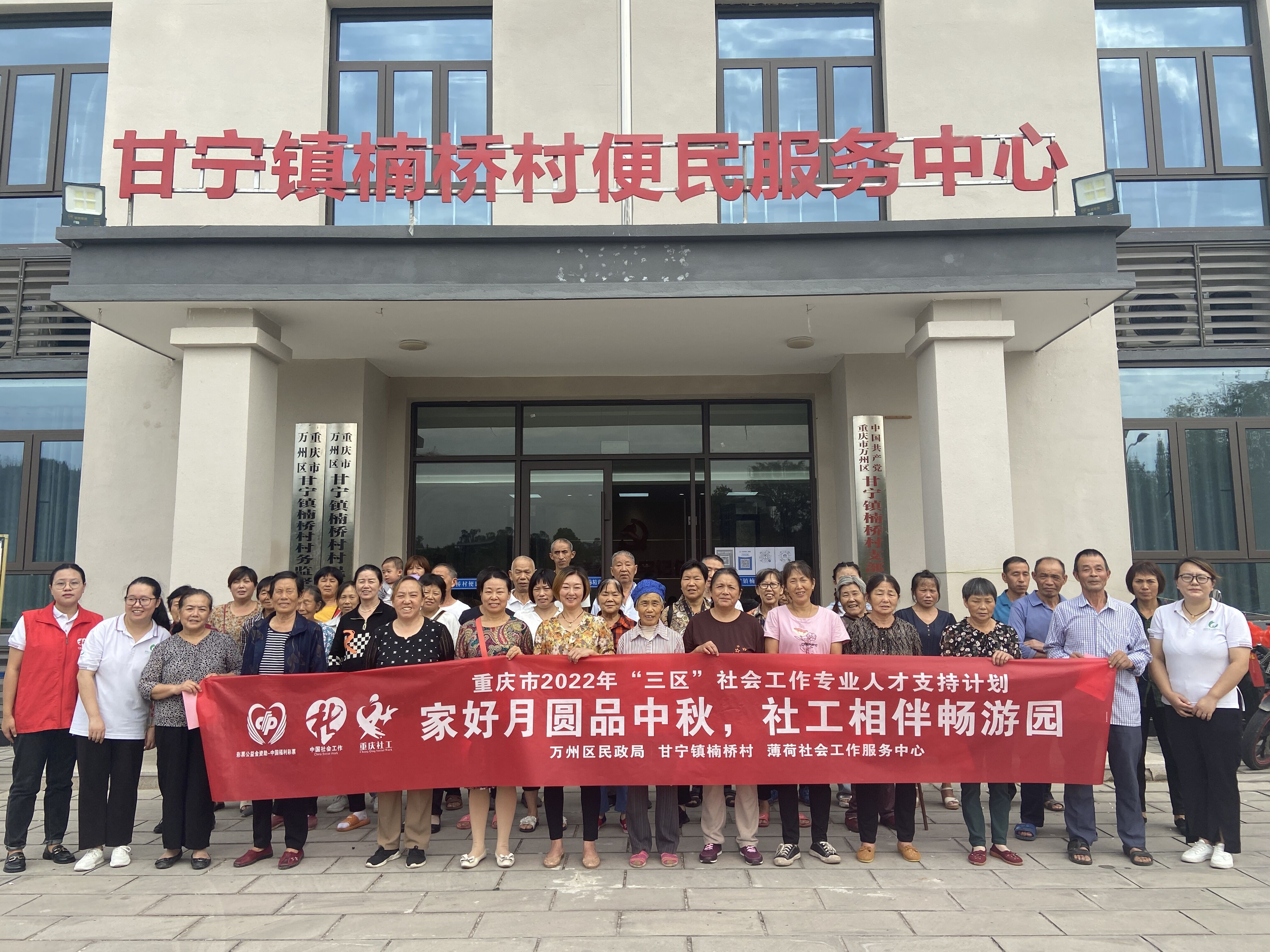月到中秋分外明,人到佳节别样亲。为继承和弘扬中华民族优秀传统文化,更好地满足人民群众精神文化需求,增强节日文化内涵,烘托文化氛围,在中秋佳节来临之际,薄荷社工联合楠桥村支两委开展重庆市2022年“三区”计划项目之“家好月圆品中秋,社工相伴畅游园”主题活动,进一步促进社工和村民间的交流互动,让社工服务融入到村民生活中。