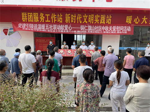 为进一步弘扬中华民族传统文化,关爱铜仁市思南县旗山社区留守老人和儿童,9月9日,东莞市结对帮扶铜仁市社会工作服务项目第六小组(东莞市塘厦镇、横沥镇、茶山镇)联合贵州省铜仁市思南县旗山社区、东莞市正阳社会工作服务中心党支部开展“党建引领送温暖 五社联动献爱心——铜仁市旗山社区中秋关爱慰问活动”。思南县委常委、副县长、旗山社区第一书记牟立,思南县塘头镇党委委员、政法委员李俊,镇组织委员盘玉婷,旗山社区驻村干部、支部书记田儒江等领导出席活动。