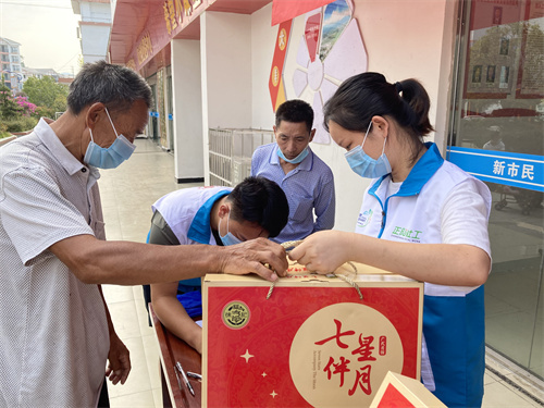 跨越千里,情暖中秋。“前两周,我们跟东莞社工督导商量中秋关爱社区留守老人和儿童活动,东莞社工督导随即就联系徐福记、澳牧牛奶等爱心企业,得到了爱心企业的积极响应,将物资从千里之外的广东发货到贵州铜仁”思南县委常委、副县长、旗山社区第一书记牟立介绍称,自东莞市结对帮扶铜仁市社会工作服务项目第六小组进驻社区服务以来,为居民提供了多元的社工服务,链接了各界爱心资源服务居民,进一步促进搬迁安置居民共融互助,增加社区凝聚力和归属感。