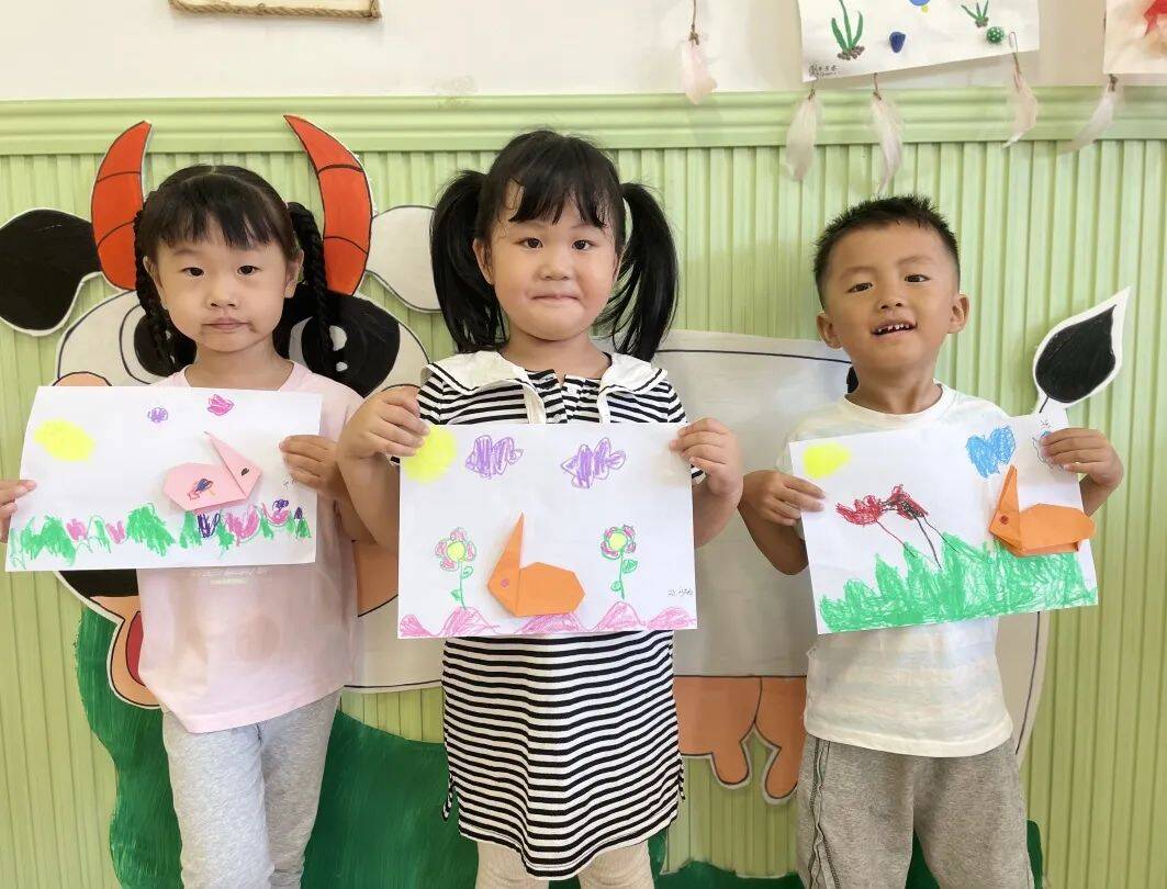 孩子们还用折纸折了一只玉兔,看看它可爱吗?作品虽小,但情意深重,表达着对中秋节满满的祝福。