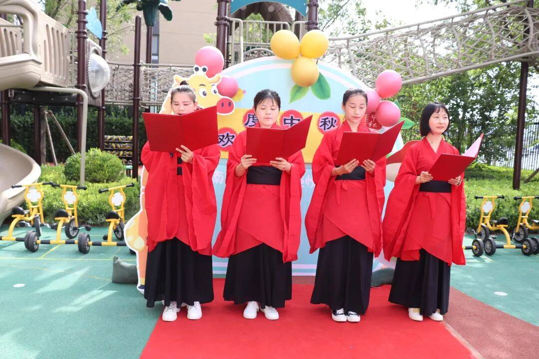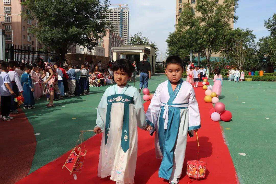 作为中国的重要传统节日,中秋节丰富的习俗也体现在衣食出行等各个方面,汉服文化作为我们中华民族的鲜明印记,也是传统文化的传承和载体,汉服也是我国汉族的传统服饰。快看小朋友们手提灯笼进行了一场精彩的花灯走秀,开展了谢师恩的活动,弘扬尊师重教,感念师恩的美德。