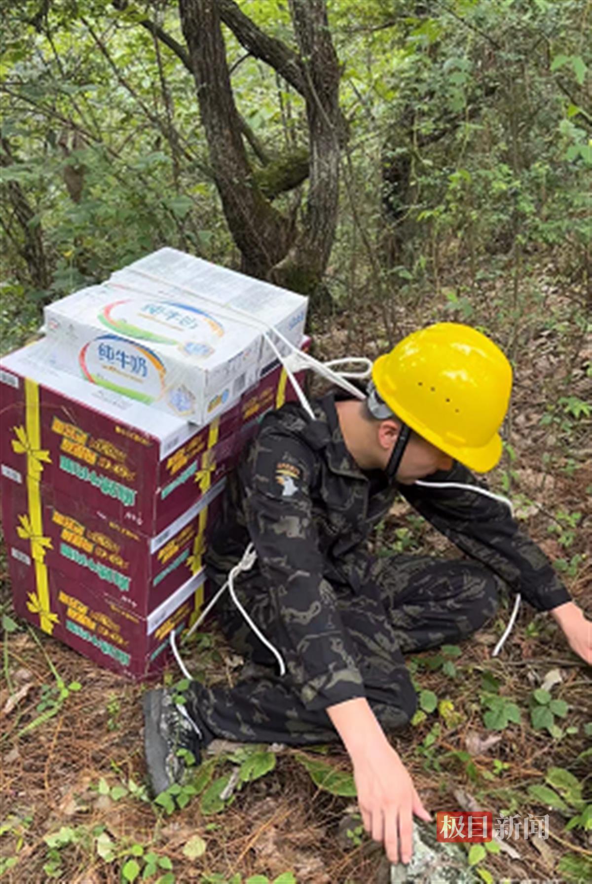 阮恒背着物资上山(受访者供图)