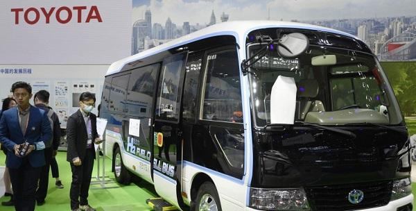 丰田汽车在“中国国际进口博览会”上首次公开的燃料电池车(FCV)巴士