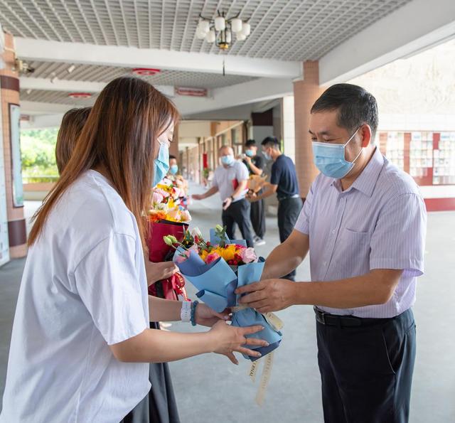 “老师们,辛苦了!感谢你们为长安教育事业所作的贡献。”肖洪代表镇委镇政府向教师们献上花束,祝愿老师们节日快乐。