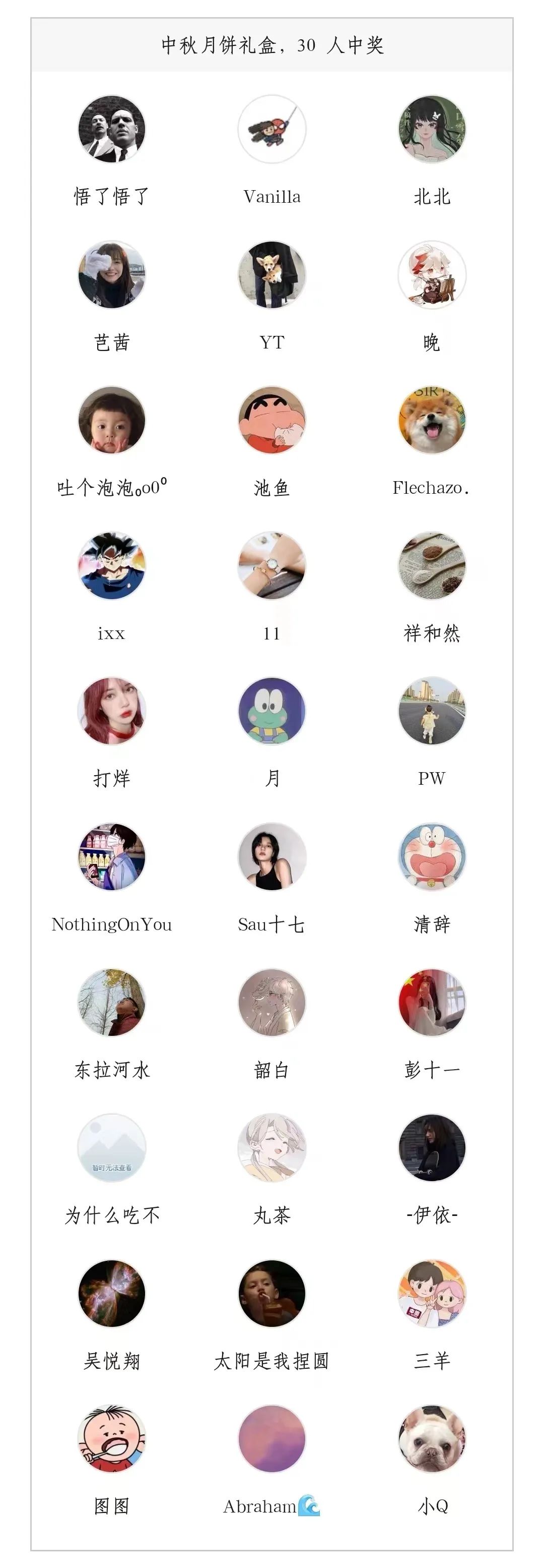 分别获得30份月饼套盒、30个笔记本、30个马克杯!