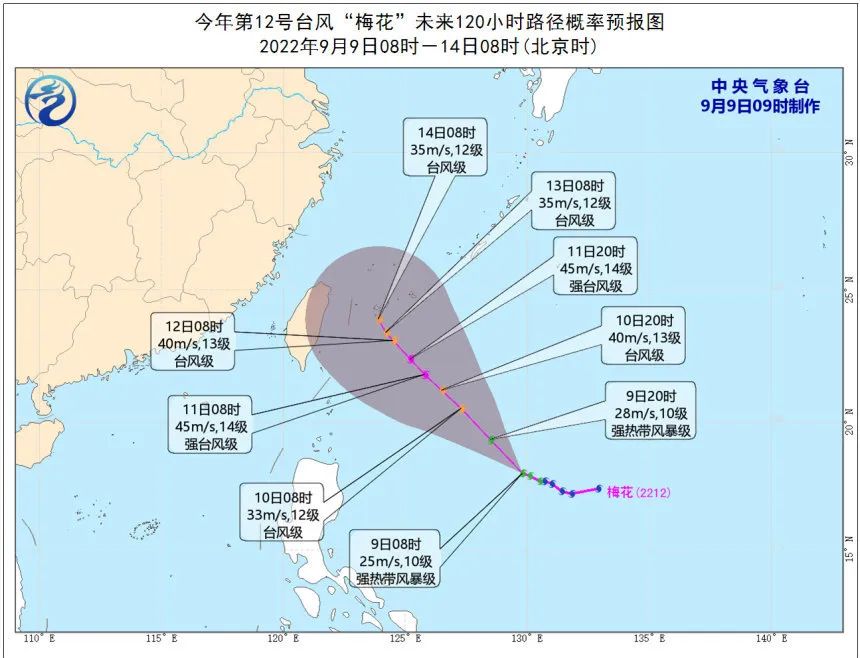 ① 12日至13日“梅花”将在台湾以东洋面停滞或回旋