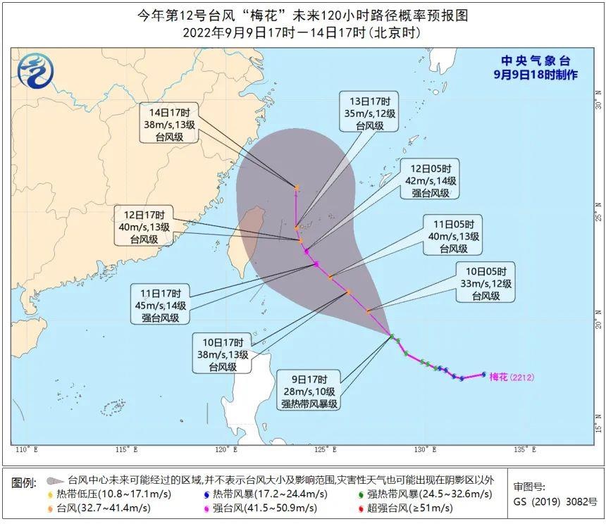 目前“梅花”已加强为强热带风暴级,它的螺旋云系继续整合,12日至13日将在台湾以东洋面停滞或回旋,14日移入东海海面,逐渐向浙江中北部一带沿海靠近。不过由于“梅花”夹在西风槽和副热带高压之间,未来的强度和路径还存在很大不确定性。