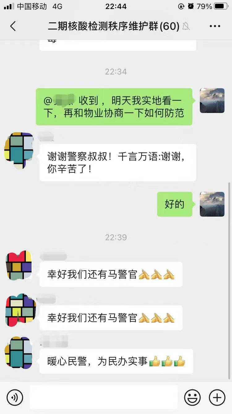 “封控在家,小区有个警察叔叔,还是很有安全感。”社区居民说。每天早上7点半到中午12点,马通都准时出现在小区核酸检测现场,做好志愿服务,也当好“警察叔叔”。