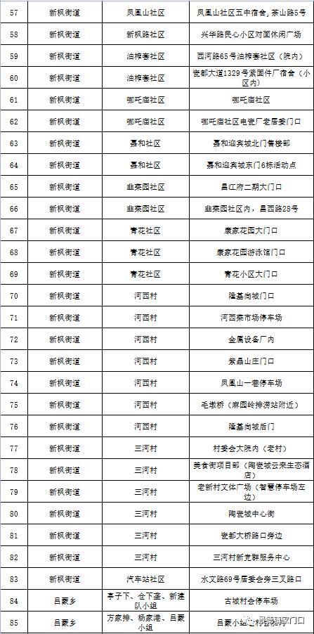 各乡镇(村组)、城区设置的临时核酸采样点和常态化采样点。