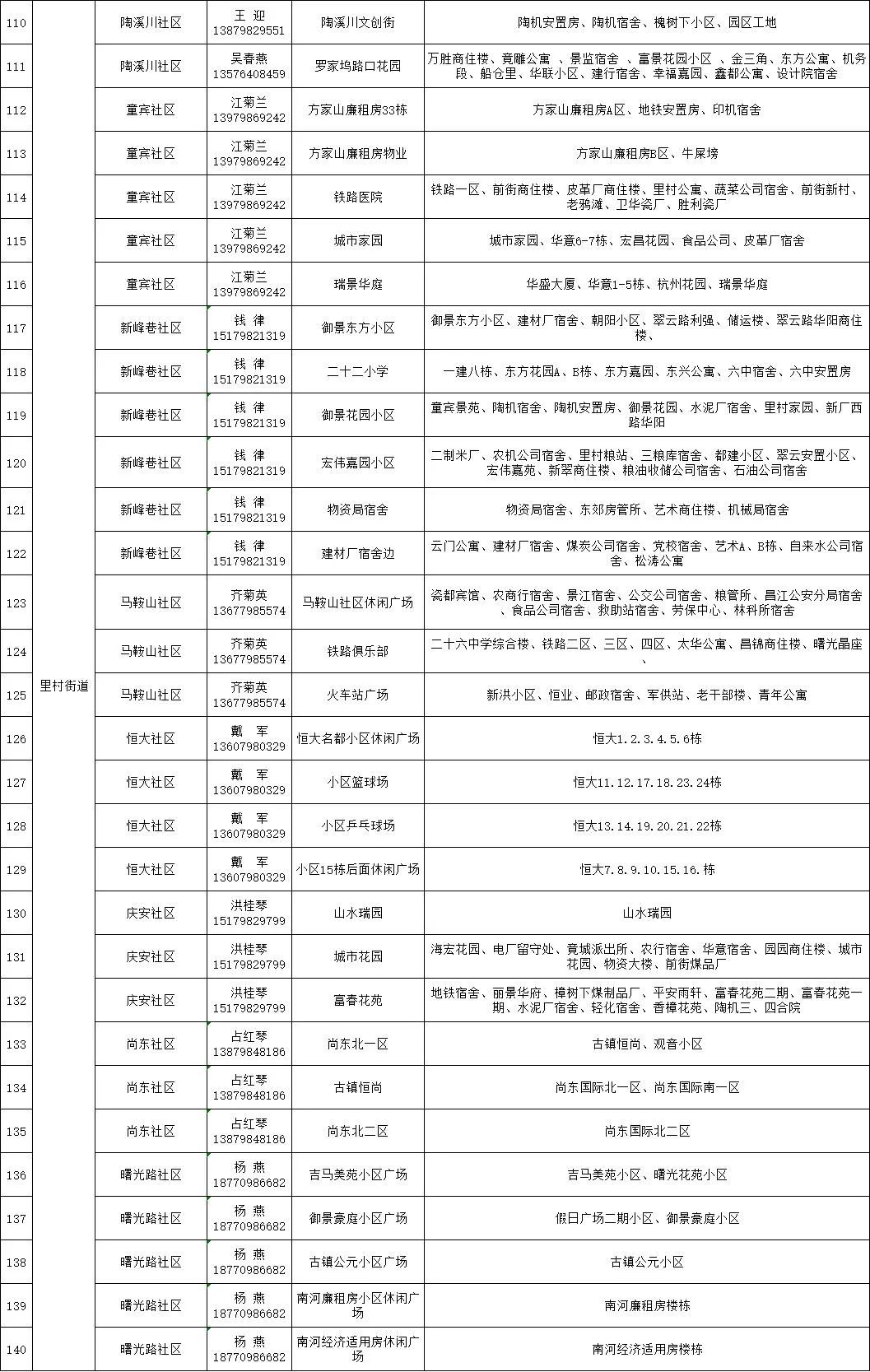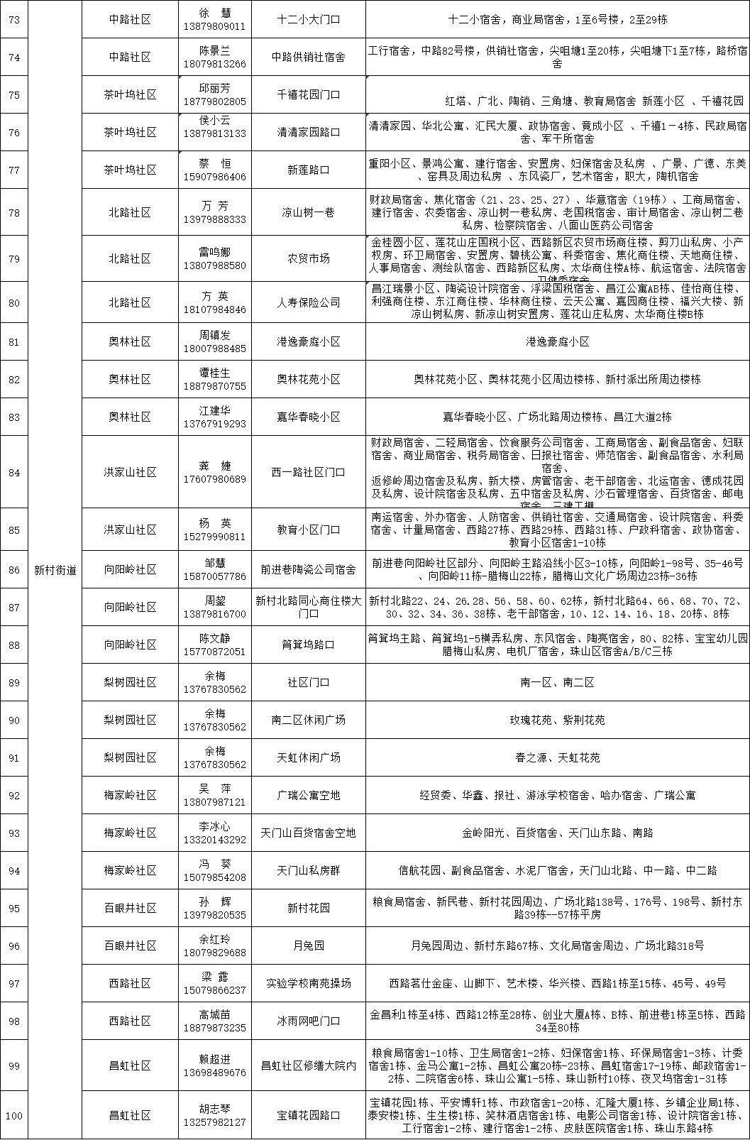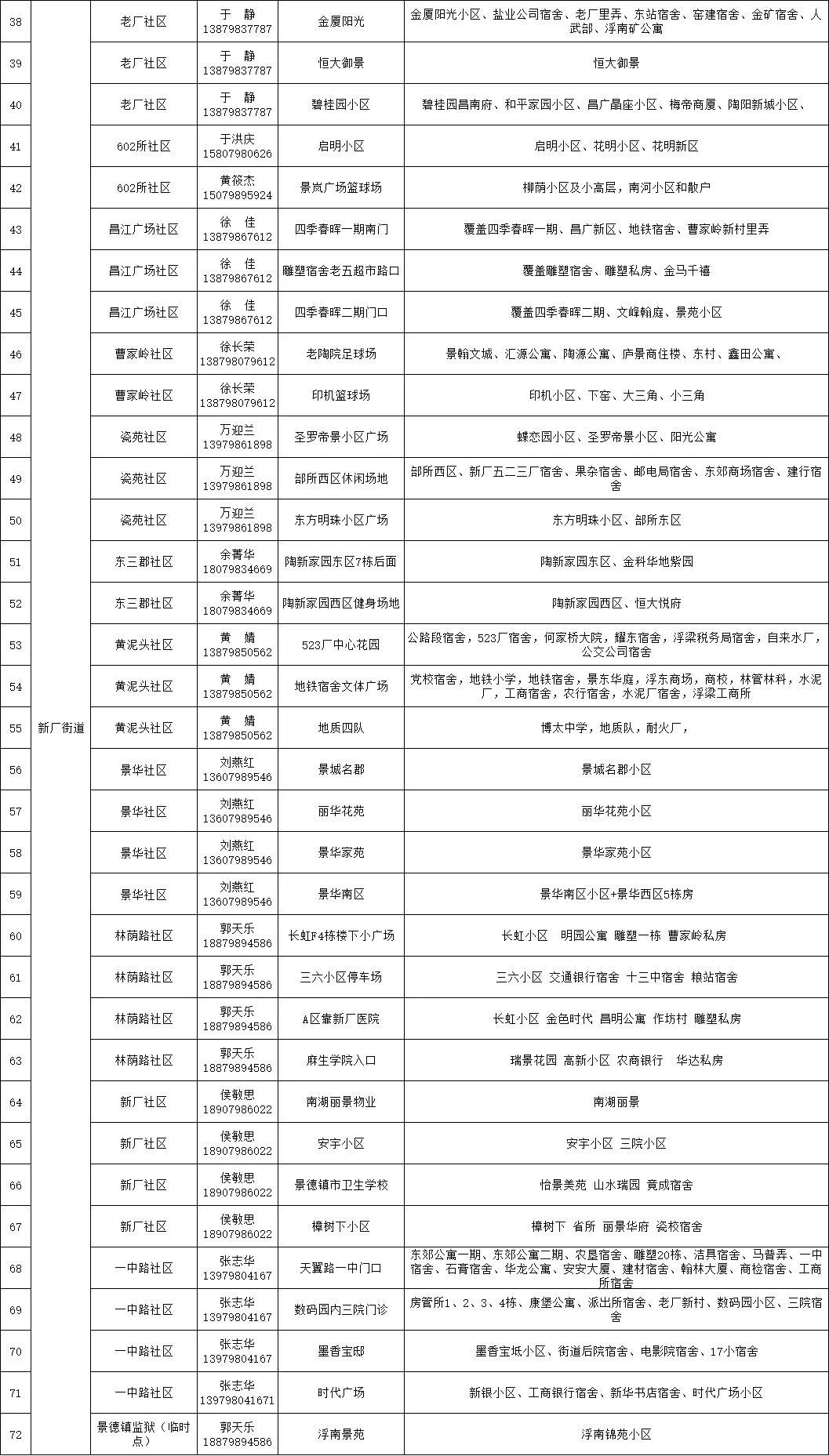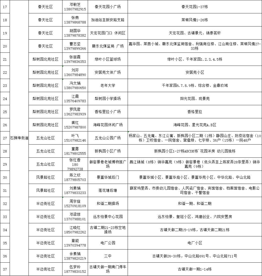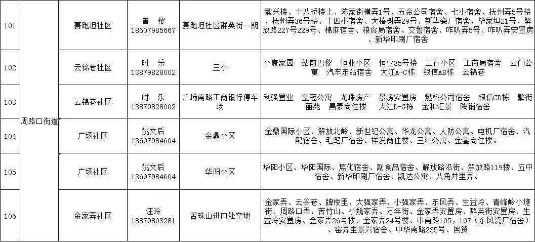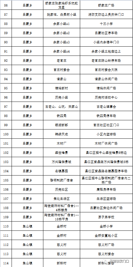 珠山区新冠病毒全员核酸检测区域分布表