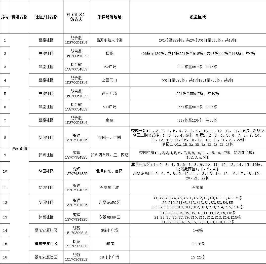 在各街道(经开区)设置临时核酸采样点。(详见附表)