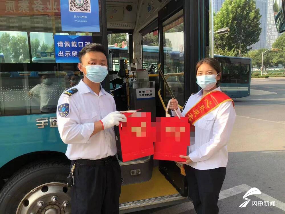 齐鲁网·闪电新闻9月11日讯 9月10日,在济南公交舜泰北路凤凰路站,有乘客在上车时就收到了来自306路线上王延国、孟花两位驾驶员送上的月饼和温馨祝福。