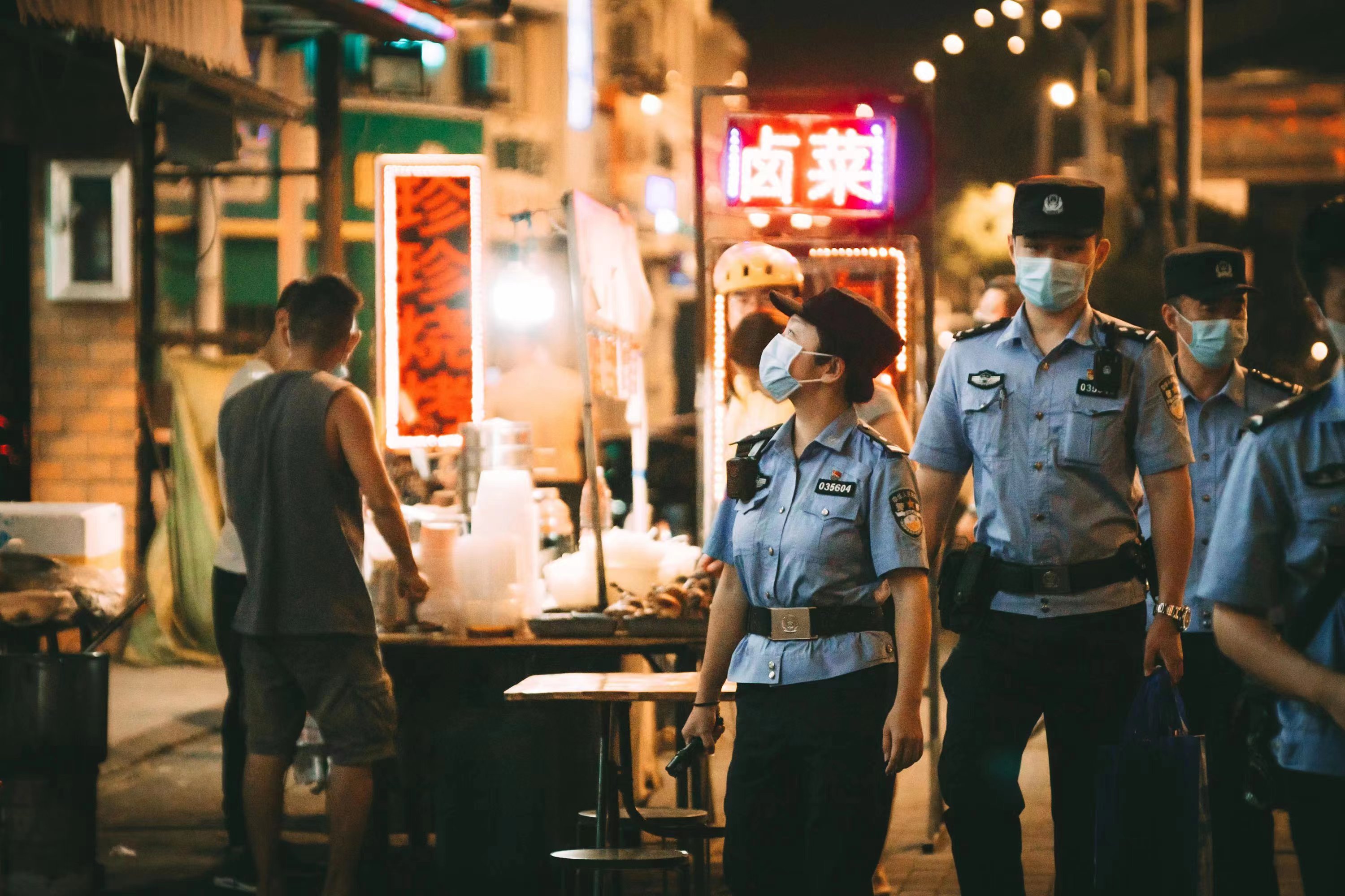 晚8时许,在张家湾江盛路的宵夜大排档,武汉市公安局洪山区分局张家湾派出所女警李蓓正和同事们一起进行巡逻。不少食客一眼认出了这位“蓓蓓警官”。